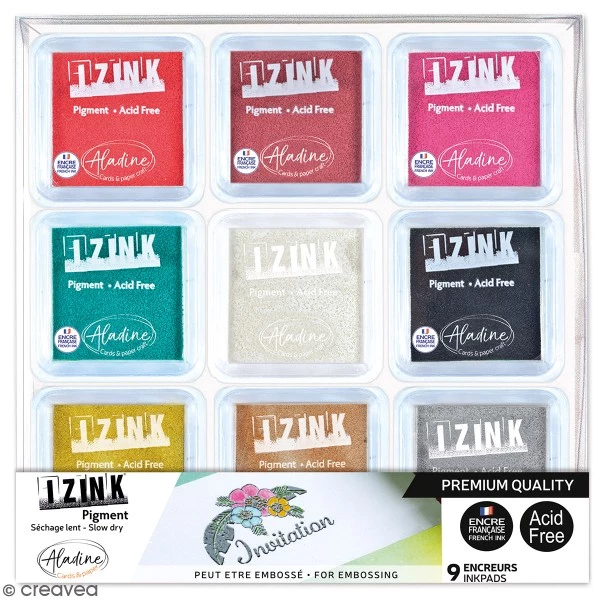 Ces 9 encreurs Izink Pigment, à séchage lent, vous permettront de réaliser de belles créations en scrap, carterie créative et même en home déco.