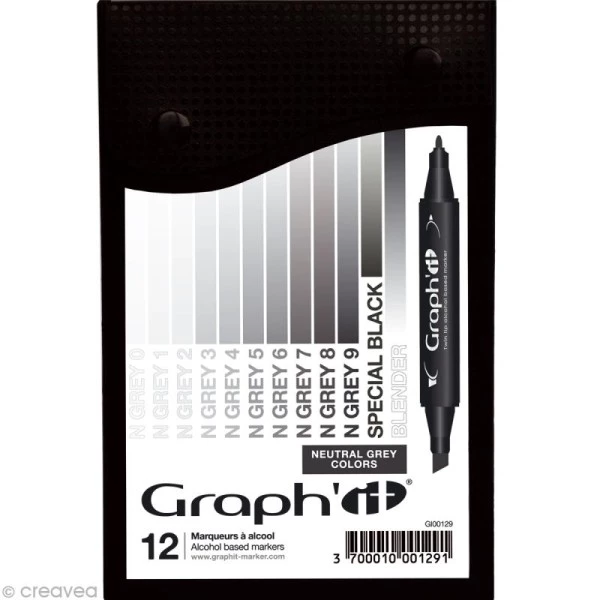 L’assortiment de marqueurs Graph’it Neutral grey colors est composé de 12 feutres à alcool double pointe, idéals pour les dessinateurs, les srappeuses et les étudiants en Beaux-Arts. Comme le Copic ou le Promarker, les feutres Graph’it Neutral grey colors vous faciliteront la colorisation de tous vos dessins.
