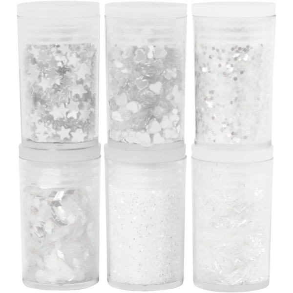 Description de Assortiment de paillettes – Différents motifs – Blanc – 6 x 5 gr