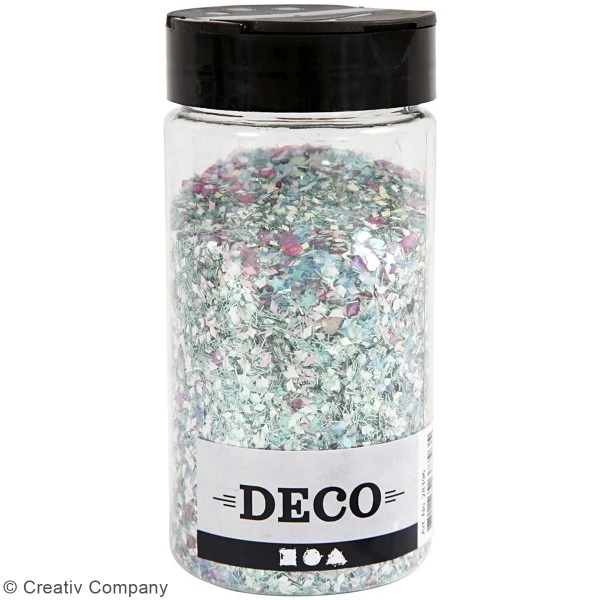 Description de Assortiment de paillettes – Blanc Bleu Rose – 170 gr
