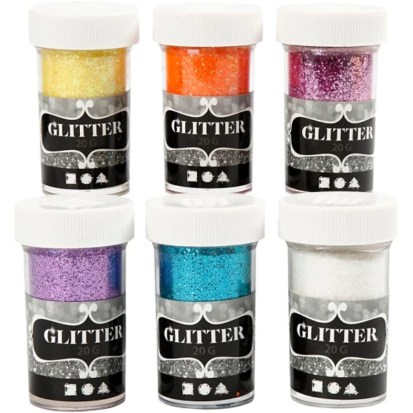 Description de Paillettes – Assortiment, 6×20 gr, Couleurs assorties