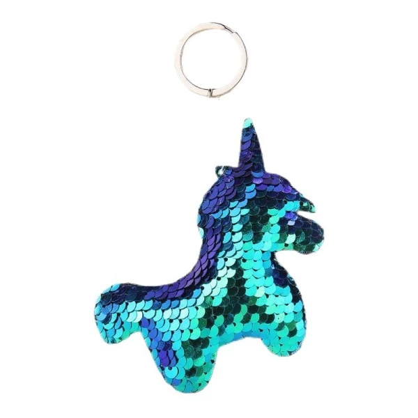 Description de 1 pcs Foncé Bleu Vert Noir licorne porte-clés réversible paillettes Glitter Pompon paillettes Porte-