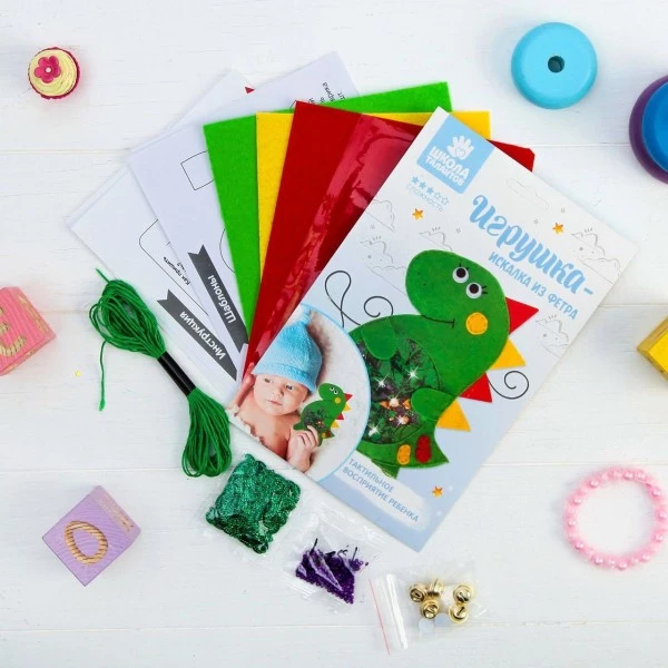 Description de Dinosaure Senti Bébé Shaker Jouet Kit De Bricolage, Des Paillettes Hochet, Estimé À Coudre, Feutre D