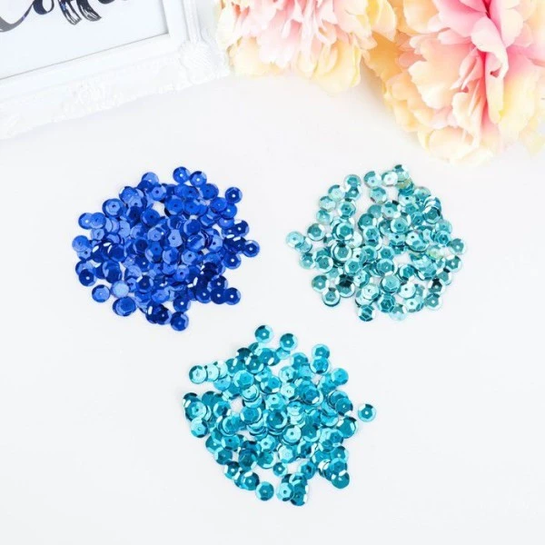 Description de Paillettes mĂ©lange pour projets de bricolage” Classique 2 “nuances de bleu, or, lĂąche, rond, tasse,