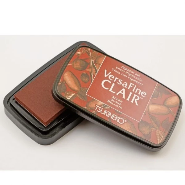 Encre Versafine claire Acorn – Tsukineko L’encre est sans acide, résistante à l’eau et à la lumière. Elle est facile à nettoyer, grâce à l’ai de d’un tapis et d’un nettoyant toutes encres. Elle existe en 24 couleurs.