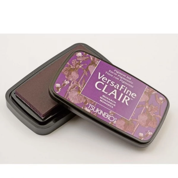 Encre Versafine claire Monarch – Tsukineko L’encre est sans acide, résistante à l’eau et à la lumière. Elle est facile à nettoyer, grâce à l’ai de d’un tapis et d’un nettoyant toutes encres. Elle existe en 24 couleurs.