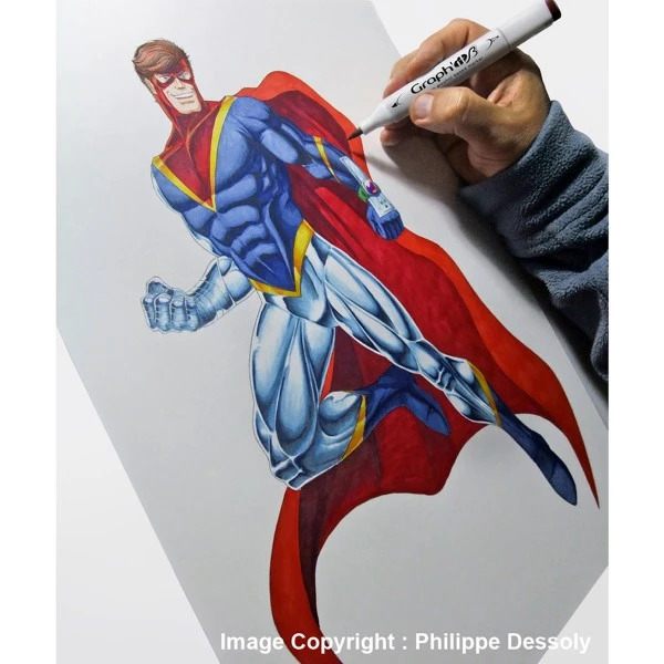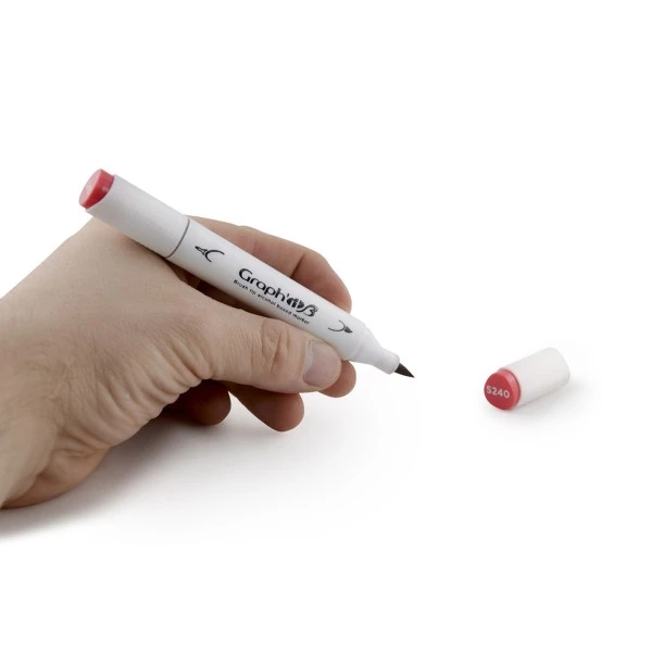 Le marqueur Graph’it est un marqueur à alcool composé d’une double pointe pour s’adapter au mieux à vos besoins de créations ! D’un côté, une pointe japonaise pinceau en fibres synthétiques, généreuse en ancrage pour les tracés plus ou moins épais ! De l’autre côté, vous pourrez tracer avec précision les contours et détails grâce à une pointe de 0,5 mm idéale pour tous les tracés fins !