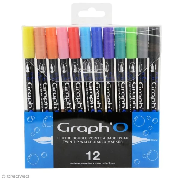 Données techniques pour Graph’O – Feutre pinceau Double pointe – Couleurs Basiques – 12 feutres