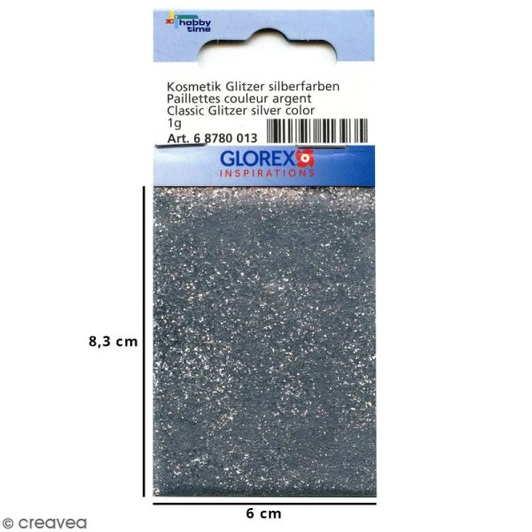 Données techniques pour Paillettes pour cosmétiques – Argenté – 1 g