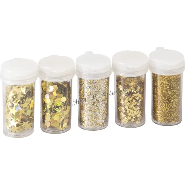 Description de Assortiment de paillettes Or 5 tubes de 4 g