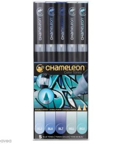 Le coffret de marqueurs permanents à alcool Chameleon Blue tones vous offre la possibilité de commencer directement vos dessins et croquis, grâce à la jolie palette de 5 couleurs Teintes de bleu (5 feutres) contenue dans le set !