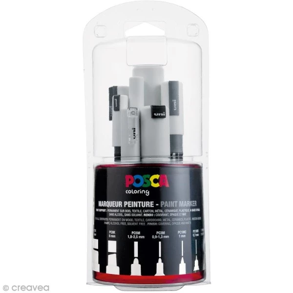 Le set de 7 marqueurs Posca Blanc Multi pointe de 0,7 Ă 15 mm sera parfait pour dĂ©couvrir les Posca ! L’assortiment de Posca Multi pointe sera idĂ©al pour dessiner, Ă©crire, peindre, dĂ©corer, marquer et colorer. Complet et polyvalent, le kit multi pointe Posca Blanc sera idĂ©al pour vos projets crĂ©atifs de dessin, carterie et scrapbooking.
