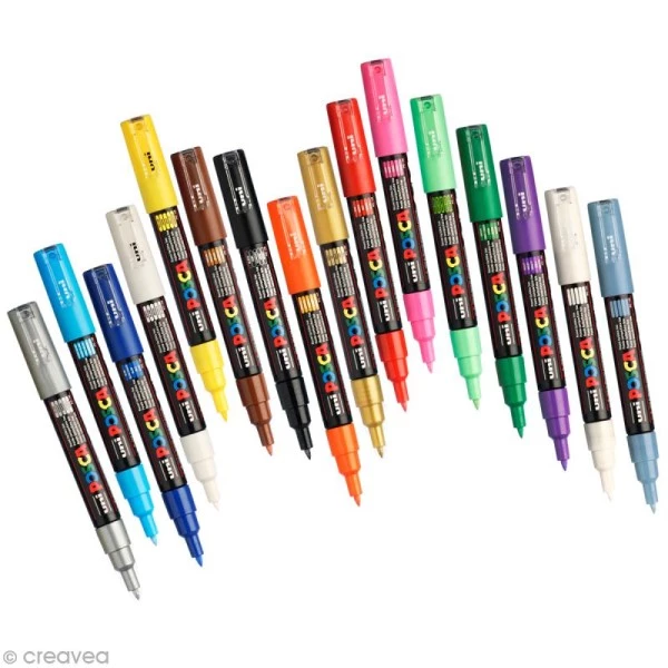 Le set de 16 marqueurs Posca Basiques à pointe Calibrée extra fine de 0,7 à 1 mm sera parfait pour découvrir les Posca ! Le Posca pointe Calibrée extra fine sera idéal pour écrire, dessiner, peindre, décorer, colorer et marquer. Facile, ludique et mixte, le Posca à pointe Calibrée extra fine offre un tracé droit et dense. En quelques mots, le marqueur Posca petit format à pointe Calibrée extra fine est un marqueur peinture idéal pour les mises en couleur précises. Il sera très apprécié par les adultes confirmés ou débutants comme les enfants.