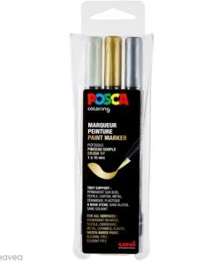 Le set de 3 marqueurs Posca Or, Argent & Blanc à pointe Pinceau de 1 à 10 mm sera parfait pour découvrir les Posca ! Le Posca pointe Pinceau sera idéal pour peindre, colorer, dessiner, décorer et calligraphier. Souple, fluide, pratique et polyvalent, le Posca à pointe Pinceau se glissera dans les moindres recoins de vos créations. En quelques mots, le marqueur Posca Brush à pointe Pinceau est comme un pinceau sans les inconvénients ! Il sera très apprécié par les artistes peintres comme les débutants et enfants.