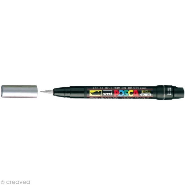 Description de Feutre Posca PCF-350 – Pointe pinceau – Argent – 1pce