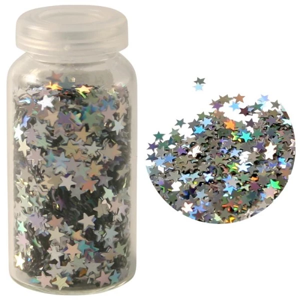 Description de Paillettes mini étoiles aluminium argent Hologramme 3 gr
