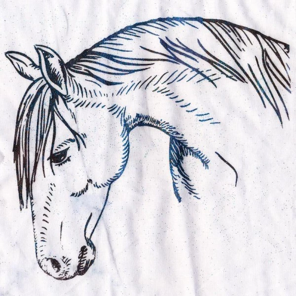 Pour réaliser un motif complet avec la poudre à paillettes Bleu saphir sur un tee-shirt par exemple, vous devez vous munir d’un tube de colle de transfert et du pochoir de votre choix My Style. Etalez la colle sur le motif du pochoir pour textile, tenez le pochoir avec une main puis tirez la colle spéciale transfert papier vers le bas du pochoir avec la raclette en formant un angle à 45°. Renouvelez l’opération, mais de gauche à droite cette fois. Egalisez ensuite la colle sur le pochoir tissu. La colle doit parfaitement adhérer au textile. Attention à ne jamais dépasser du pochoir ! Décollez le pochoir pour tissu avec prudence de droite à gauche. Une fois le motif encollé, parsemez la poudre de paillettes sur la colle encore humide. Posez une feuille de papier à repasser sur le motif puis fixez-le au fer à repasser et c’est terminé !