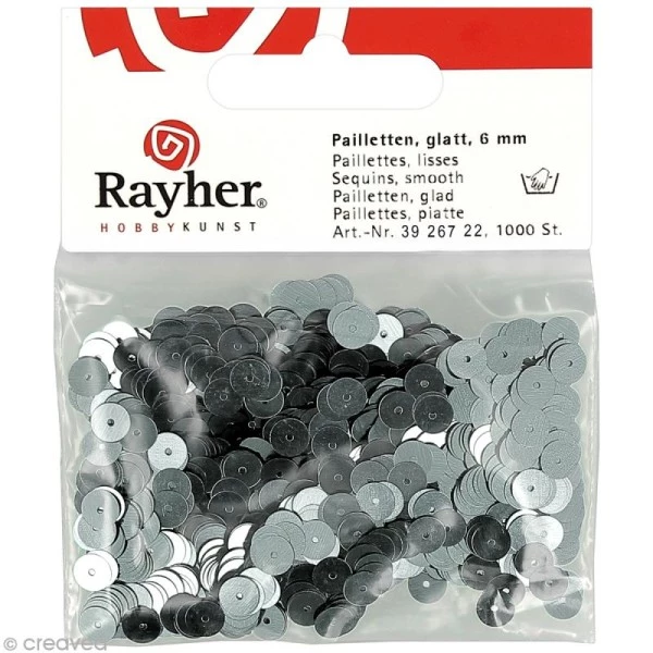 Ces 1000 sequins plats de couleur Argenté métallisé (diam 6 mm), sont idéalement conçus pour décorer les objets en polystyrène et agrémenter vos créations de couture. Très pratique et simple à utiliser, chaque sequin plat est perforé en son milieu pour vous permettre de les épingler facilement sur votre support semi rigide (polystyrène, carton, papier mâché, etc.) grâce aux épingles à sequin.