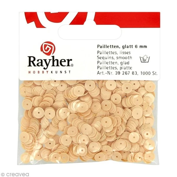 Ces 1000 sequins plats de couleur Beige écru mat (diam 6 mm), sont idéalement conçus pour décorer les objets en polystyrène et agrémenter vos créations de couture. Très pratique et simple à utiliser, chaque sequin plat est perforé en son milieu pour vous permettre de les épingler facilement sur votre support semi rigide (polystyrène, carton, papier mâché, etc.) grâce aux épingles à sequin.