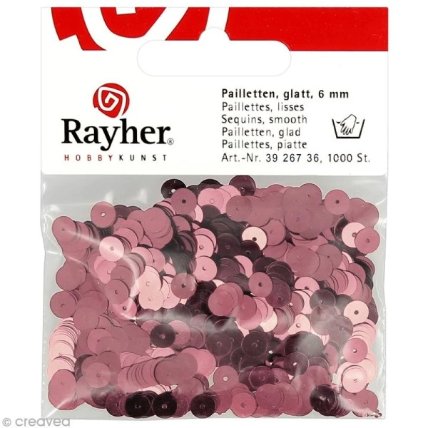 Ces 1000 sequins plats de couleur Rose métallisé (diam 6 mm), sont idéalement conçus pour décorer les objets en polystyrène et agrémenter vos créations de couture. Très pratique et simple à utiliser, chaque sequin plat est perforé en son milieu pour vous permettre de les épingler facilement sur votre support semi rigide (polystyrène, carton, papier mâché, etc.) grâce aux épingles à sequin.