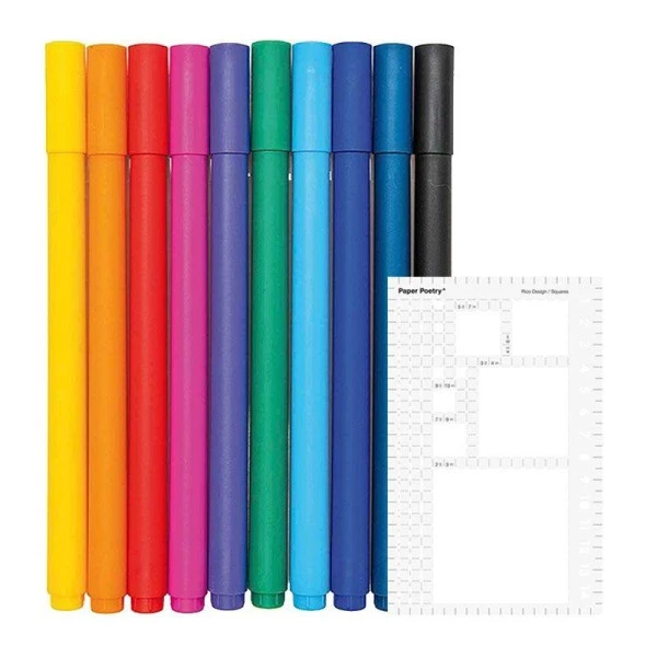 Description de 10 stylos gel fin 0,4 mm + Pochoir carrés