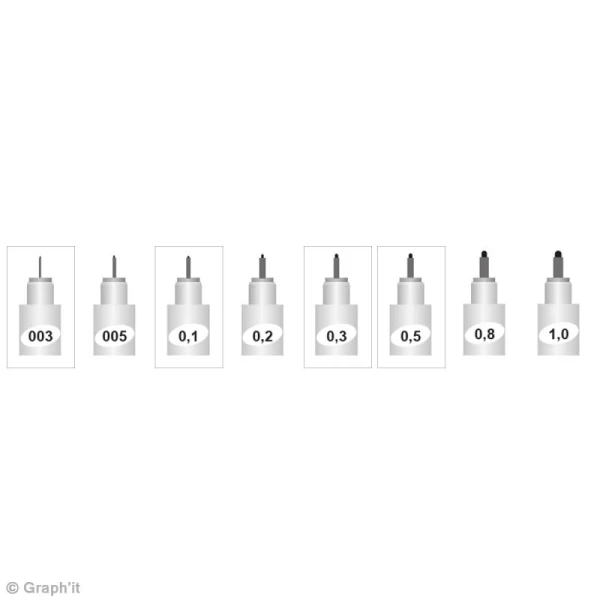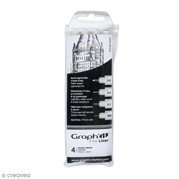 Pochette de stylos feutres techniques Fine liner par Graph’it, pour des tracĂ©s nets, prĂ©cis et rĂ©guliers. IdĂ©al pour papier calque et colorisation aux marqueurs Ă alcool.