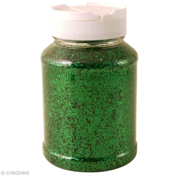 Le gros pot Vert de paillettes sera idéal en période de fêtes, lorsque vous décorez des objets en bois et en papier mâché ou des cartes de voeux.