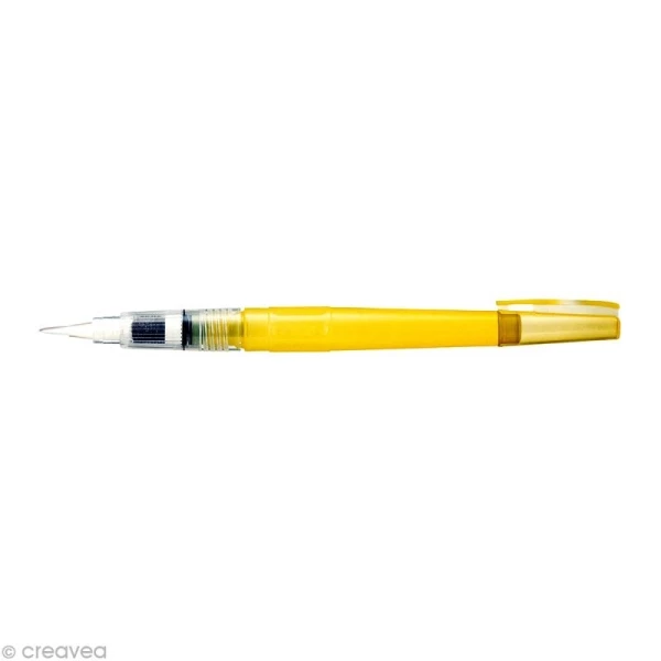 Cet astucieux pinceau à eau à pointe fine va vous permettre de réaliser de jolis effets d’aquarelle sur vos projets de carteries, faire-part, etc. Grâce à son réservoir d’eau intégré, plus de risque de gâcher votre travail avec la goutte d’eau colorée qui tombe de la pointe du pinceau sur le chemin du pot à eau à la feuille et ce, justement là où il ne faut surtout pas qu’elle tombe ! Vous pouvez l’utiliser avec les encres à peindre, la gouache, l’acrylique, l’aquarelle ou les crayons aquarelle.